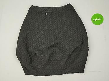 Spódnica damska, grafitowa, o fasonie bombki/tulip (balonowa), z elastyczną gumką w pasie. Tkanina o strukturalnym, pikowanym splocie przypominającym warkocz – miękka, grubsza, idealna na chłodniejsze dni. Minimalistyczny detal: mała metalowa zawieszka w kształcie serca przy pasie.
