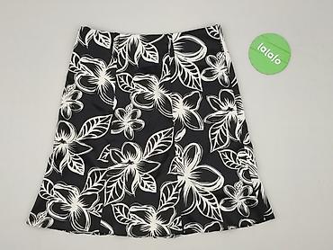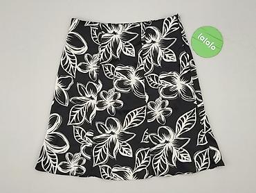 Spódnica damska w drobny kwiatowy wzór - Rozmiar: S (z metki) - Krój: prosta, długość przed kolano - Talia: elastyczna gumka - Kolor: czarny w białe kwiatki z żółtym środkiem i szarymi listkami - ...