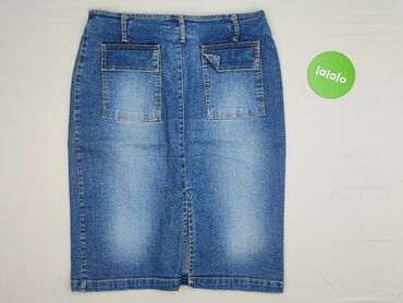 Spódnica jeansowa damska, rozmiar S - Krój: ołówkowy, długość midi - Wysoki stan z szlufkami na pasek - Zapięcie: guzik + zamek z przodu - Kolor: klasyczny jasny niebieski (sprany denim) - Efekt d...