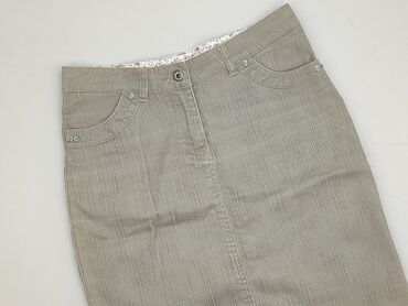 Spódnica damska TOM & ROSE (Ladies Wear) - Rozmiar: M (z metki) - Krój: ołówkowy, z przodem w formie delikatnej zakładki/owalnego rozcięcia - Kolor bazowy: szary melanż - Wzór: kwiatowy – róże w od...