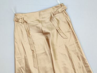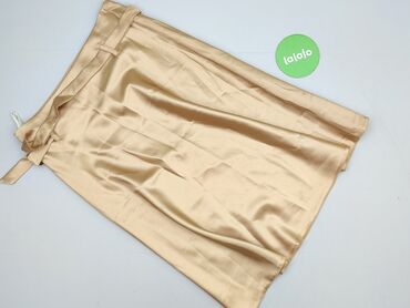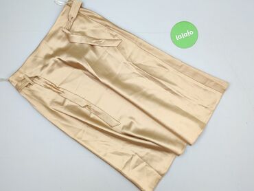 Spódnica satynowa w kolorze szampańskim/złotym - fason: rozkloszowany, lekko trapezowy - długość: midi (na zdjęciach poniżej kolana) - zapięcie: na bokach guziki i troczki do wiązania (model typu w...Stan: