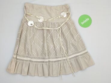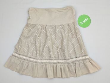 Spódnica damska w kolorze beżowym, o prostym kroju do kolan. - Materiał: lekka tkanina bawełniana z domieszką (miękka, nieelastyczna w dotyku) - Talia: szeroka guma – wygodne dopasowanie bez zapięc...