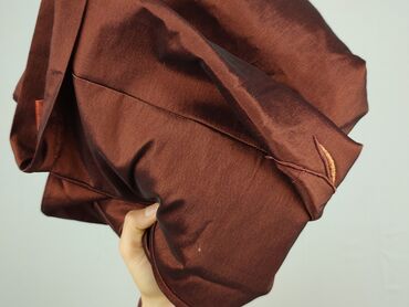 - Tkanina: 100% poliester (metka na zdjęciu), lekko połyskująca, z delikatną podszewką w odcieniu karmelowym