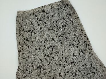 Długa spódnica damska z wzorem paisley - Krój: rozszerzany, lekko falujący dół - Długość: maxi - Wzór: paisley (ornamenty roślinne) w odcieniach jasnoszarych na czarnym tle - Talia: elastyczna (gu...