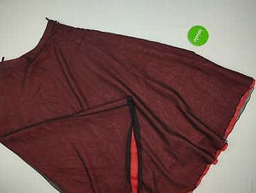 - Tkanina: lekka, półprzezroczysta warstwa wierzchnia (szyfon/tiul) z falującą, czarną lamówką u dołu; pod spodem kryjąca podszewka w intensywnym czerwonym kolorze