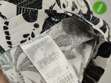 Spódnica damska MEDICINE, rozmiar S - Fason: rozkloszowana, długość midi - Wzór: czarno‑biały nadruk roślinno‑zwierzęcy (tukany, liście, gwiazdki) na jasnym tle - Materiał: 70% wiskoza, 30% len – ...Stan: