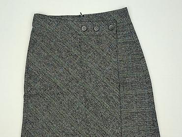 - Krój: ołówkowy z delikatnym, asymetrycznym przodem i ozdobnymi trzema guzikami przy pasie
