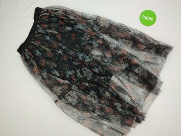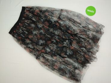 Czarna spódnica midi z tiulową warstwą i kwiatowym nadrukiem - Długość: midi (za kolano) - Fason: lekko rozkloszowana, marszczona - Pas: szeroka, elastyczna guma w kolorze czarnym - Materiał: lekk...Stan: