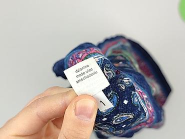 - Kolor: granatowy z drobnym wzorem paisley; u dołu szeroki pas z etnicznym motywem w zieleni, bordo i granacie