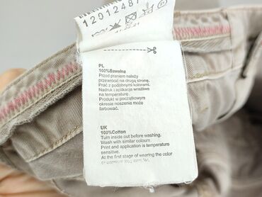- Szczegóły: szlufki na pasek, ukośne kieszenie z przodu z ozdobnymi troczkami/kokardkami, haftowane logo przy kieszeni, tylne kieszenie z patkami i guzikami, niewielkie rozcięcie z tyłu u dołu