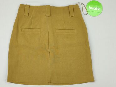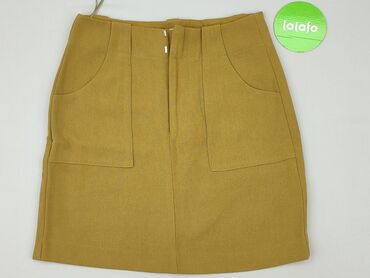 Żółta spódnica mini dla kobiet. Spódnica ma prosty krój, z zakładkami z przodu i bocznymi kieszeniami, co zapewnia swobodny wygląd i funkcjonalność. Z tyłu znajduje się ukryty zamek błyskawiczny. L...Stan: