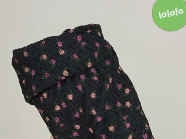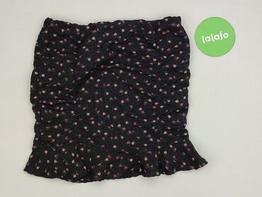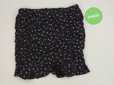Czarna mini spódnica w kwiaty - Wzór: gęsty nadruk białych i żółtych kwiatów z zielonymi gałązkami na czarnym tle - Krój: dopasowany, mini - Marszczenia: dekoracyjne, pionowe marszczenie na środku...