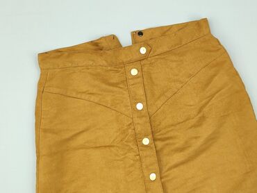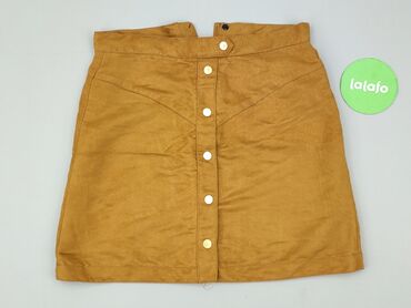 Spódnica mini w kolorze camel/karmelowym - Fason: prosta mini z wysoką talią - Zapięcie: rząd metalowych napów na przodzie - Kieszenie: dwie przednie naszywane - Tył gładki, bez zapięć - Materiał:...