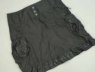 Spódnica damska Yessica (C&A) - Kolor: szary melanż w drobną kratkę - Krój: trapezowy z szerokim karczkiem; z przodu kilka głębokich zakładek - Detale: ozdobne patki z guzikami przy pasie, kryty z...