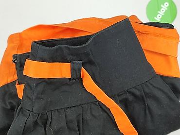 - Detale: dekoracyjne, podłużne taśmy w kolorze pomarańczowym z przodu; delikatne marszczenia pod pasem; zapięcie na zamek z boku