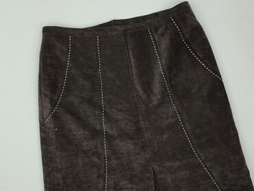 Spódnica damska IMAGE - Fason: prosta, długość za kolano - Pas: na gumce – wygodne dopasowanie - Kolor: ciemny brąz/oliwka z delikatnym, pionowym prążkiem - Materiał: miękka, lekko elastyczna tkan...