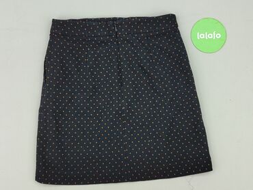 Granatowa spódnica ołówkowa w biały, drobny wzór - Krój: klasyczna ołówkowa, lekko zwężana ku dołowi - Długość: przed kolano (mini/krótka) - Wzór: drobne białe motywy na granatowym tle - Talia: ws...