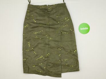 Spódnica ołówkowa damska - Kolor: oliwkowa z delikatną fakturą tkaniny - Krój: ołówkowy, długość do kolan, rozcięcie z tyłu dla swobody ruchów - Zapięcie: z tyłu na suwak i guzik - Rozmiar z metki...