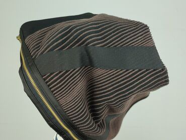 - Kolorystyka: czarno-brązowe pasy z fakturą; na froncie dekoracyjne, skośne taśmy wyszczuplające optycznie sylwetkę