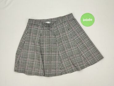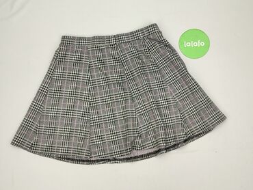 Spódnica Sinsay, rozmiar M - Krój: rozkloszowana, z głębokimi zakładkami z przodu i z tyłu, podkreślająca talię. - Wzór: szara tkanina w czarną kratkę (regularna siatka kwadratów). - Zapięcie: suw...