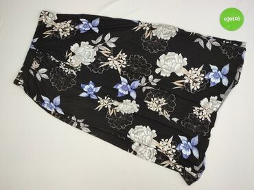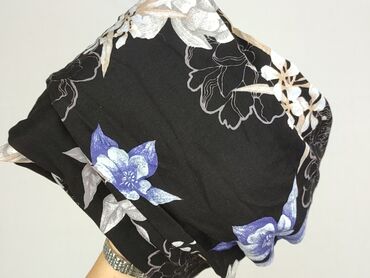 Spódnica damska Terranova, rozmiar M - Czarna baza z drobnym, kwiatowym nadrukiem (czerwone, kremowe i zielone akcenty) - Fason mini do kolan z falbaną u dołu; z przodu efekt kopertowego założenia...