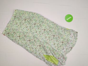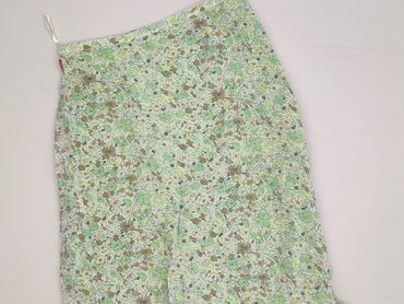 Spódnica damska H&M w rozmiarze 38, z beżowym tłem i wzorem w brązowe liście oraz kwiaty, wzbogacone o akcenty w kolorze limonkowym. Wykonana z mieszanki 97% bawełny i 3% spandexu, co zapewnia komf...