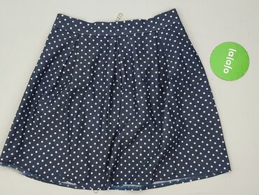Granatowa spódnica w drobne białe kropki - Krój: lekko rozkloszowana, długość do kolan (A-line) - Talia: gładki pas, zapinanie na suwak z boku - Materiał: lekka, zwiewna tkanina (miękka i cienka, ...