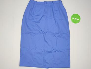 Niebieska spódnica damska, rozmiar L - Krój: rozkloszowana, długość do kolan, miękkie marszczenia od pasa - Pas: szeroka, elastyczna guma – wygodne dopasowanie - Materiał: 85% poliester, 15% len (...