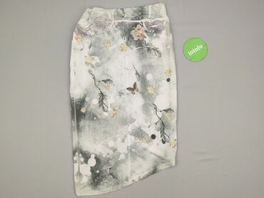 Spódnica damska ołówkowa z nadrukiem kwiatowym - Krój: ołówkowy, długość do kolan - Tkanina: gładka, lekko połyskująca, z podszewką - Kolor bazowy: ecru/kość słoniowa - Wzór: malarskie kwiaty – in...Stan:
