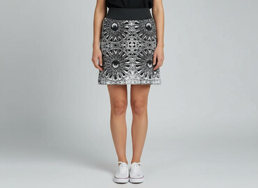 - Wzór: czarno‑białe, symetryczne motywy przypominające rozety/mandale, nadruk na całej powierzchni