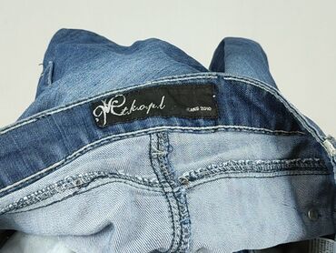 Jeansowa spódnica damska w kolorze jasnego denimu. - Krój: ołówkowy, długość nad kolano, dół asymetryczny. - Wykończenie: efekt postrzępionych brzegów na dole oraz wokół kieszeni. - Detale: ozdobn...