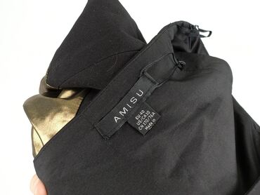 Czarna spódnica mini AMISU - Rozmiar z metki: EU 34 (US/CA 0, CN 160/64A) - Fason: dopasowana mini, z szerokim pasem w talii - Przód z dekoracyjnymi, skośnymi zakładkami tworzącymi efektowne drapo...