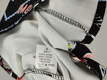 Spódnica mini z kolorowym, artystycznym wzorem w pasy. - Krój: prosta, dopasowana, długość przed kolano - Tkanina: gładka, lekko połyskująca, nieprzezroczysta - Wzór: dynamiczne pasy i smugi w odc...