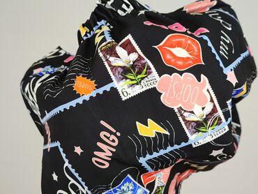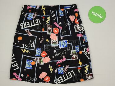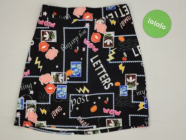 Na co dzieńCzarna spódnica mini dla kobiet, charakteryzująca się unikalnym, wzorzystym nadrukiem, który przypomina stemple pocztowe, usta, wiśnie, gwiazdki i błyskawice. Wykonana z mieszanki 95% poliestru i 5% elastanu, co zapewnia komfort i elastyczność. Idealna do stylizacji casualowych. Spódnica o długości mini, z prostym krojem, pasująca do różnych typów sylwetek.