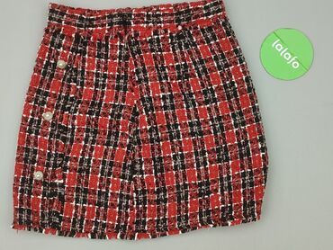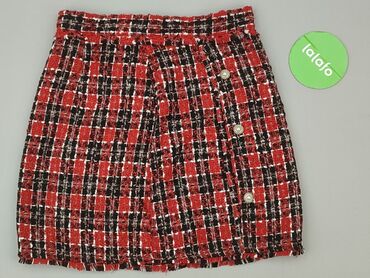 Spódnica mini HOUSE BRAND, rozmiar M. - Krój: prosta mini, z wysokim stanem - Materiał: tweed/żakard o wyraźnej fakturze - Wzór: krata w kolorach czerwonym, czarnym i białym - Przód ozdobiony dwom...Stan: