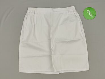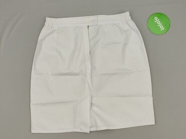 Biała spódnica midi dla kobiet. Charakteryzuje się prostym krojem. Spódnica sięga mniej więcej do kolan, co czyni ją uniwersalnym elementem garderoby, odpowiednim na wiele okazji. Wykonana z jednol...