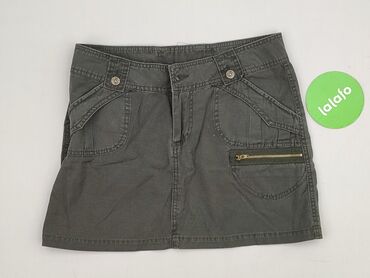Spódnica mini khaki z guzikami z przodu - Fason: mini, lekko trapezowy, z zaszewkami z przodu - Zapięcie: listwa z metalowymi napami na całej długości przodu - Talia: szeroki, elastyczny pas z prz...
