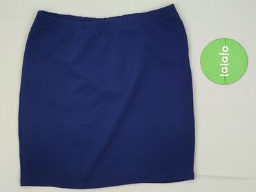 Granatowa spódnica ołówkowa z dzianiny - Krój: ołówkowy, lekko zwężany ku dołowi - Długość: mini/tuż przed kolano (zależnie od wzrostu) - Kolor: granatowy - Materiał: elastyczna, miękka dzianina (...