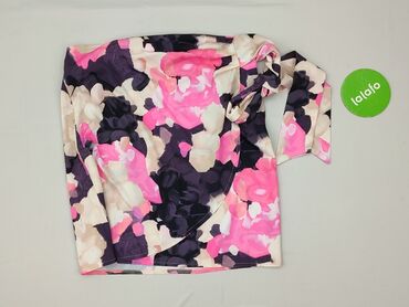 Spódnica damska mini z marszczeniem i wiązaniem z boku. - Fason: kopertowy efekt z falbaną przy dolnej krawędzi; asymetryczny przód z troczkiem do regulacji marszczenia. - Wzór: różowo‑czerwony, ...