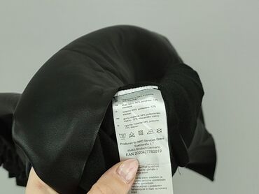 Spódnica damska mini z eco skóry, czarna - Krój: prosty, długość mini - Talia: wysoka z szeroką, marszczoną gumą; szlufki na pasek - Kieszenie: dwie duże, naszywane z przodu - Materiał: miękka skó...