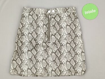 Spódnica mini z wzorem wężowym - Krój: ołówkowy/mini, delikatnie dopasowana do sylwetki - Wzór: imitacja skóry węża w odcieniach oliwkowej zieleni, beżu i bieli - Talia: klasyczna, z wąskim paskie...