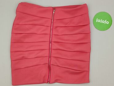 Spódnica mini XS – wzór geometryczny, koralowo‑biała - Fason: ołówkowa, dopasowana, długość mini - Talia: średnia, szeroki pas - Materiał (wg metki): 64% poliester, 22% bawełna, 11% wiskoza, 3% el...
