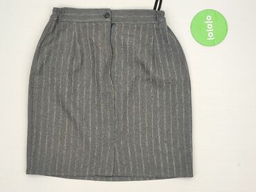 Klasyczna ołówkowa spódnica w delikatną, jasnoszarą prążkę. - Fason: ołówkowy, dopasowany, długość do kolan - Kolor: szary melanż z subtelnymi, pionowymi paseczkami - Zapięcie: suwak z tyłu - Rozc...Stan: