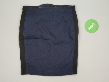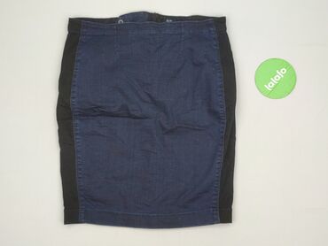 Spódnica damska F&F - Krój: ołówkowy, dopasowany - Kolor: front i dół w granatowym denimie, boki i tył czarne – wysmuklający, kontrastowy panel - Zapięcie: suwak z tyłu - Rozmiar z metki: EU 42 (U...