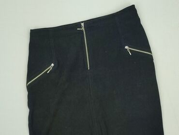 Spódnica damska ołówkowa, czarna - Krój: ołówkowy, długość za kolano - Talia: szeroki, podwyższony pas z ozdobnymi zakładkami i guzikami - Zapięcie: suwak z tyłu - Kieszenie: dwie przednie, wpuszc...