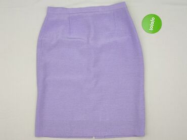 Spódnica damska ołówkowa w kolorze liliowym (pastelowy fiolet). - Krój: ołówkowy, długość przed kolano - Wysoki stan z szerokim pasem i szlufkami na pasek - Zapięcie z tyłu na suwak i haftkę - Del...