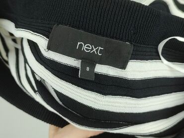 Spódnica damska Next - Fason: ołówkowy, długość do kolan - Wzór: czarno-białe, drobne, geometryczne paski/kratka - Zapięcie: z tyłu na kryty suwak i guziki wewnątrz pasa - Pionowe przeszycia model...Stan: