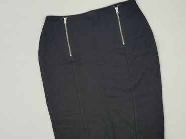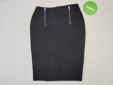 Czarna spódnica ołówkowa F&F - Rozmiar: EU 40 (UK 12, US 8) - Fason: ołówkowy, długość za kolano - Kolor: czarny, z dekoracyjną satynową wstawką biegnącą z przodu po skosie oraz satynowym wykończe...