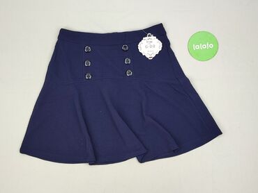 Granatowa spódnica rozkloszowana - Krój: A‑line/rozkloszowana, z szerokim pasem podkreślającym talię - Zapięcie: suwak boczny - Długość: przed kolano (mini do krótkiej midi – w zależności od wzros...Stan: