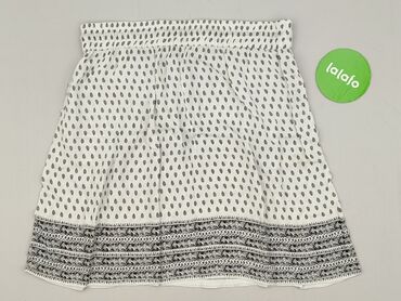 Biała spódniczka mini z wysokim stanem – wzór czarno-białych kwiatów i liści. - Krój: prosta, lekko zaokrąglona u dołu, długość mini - Talia: szeroka gumka na całym obwodzie, dobrze dopasowuje się...